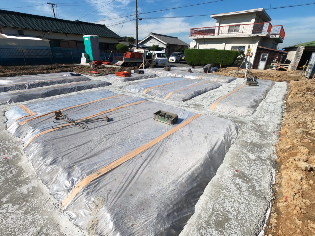 この低い部分(コンクリートが打設してある部分)に地中梁が入ります。