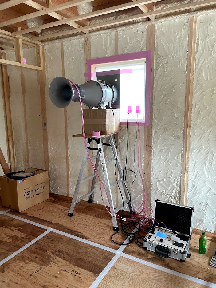 口元をテープで少し塞ぐだけで気密数値は出ます。