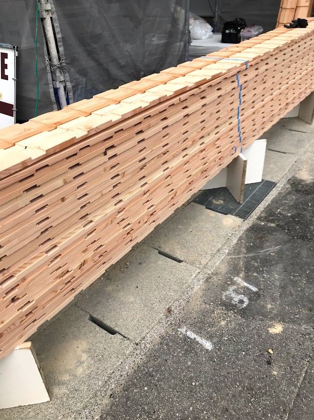 上棟時の構造用合板を張る前に断熱処理をします。
