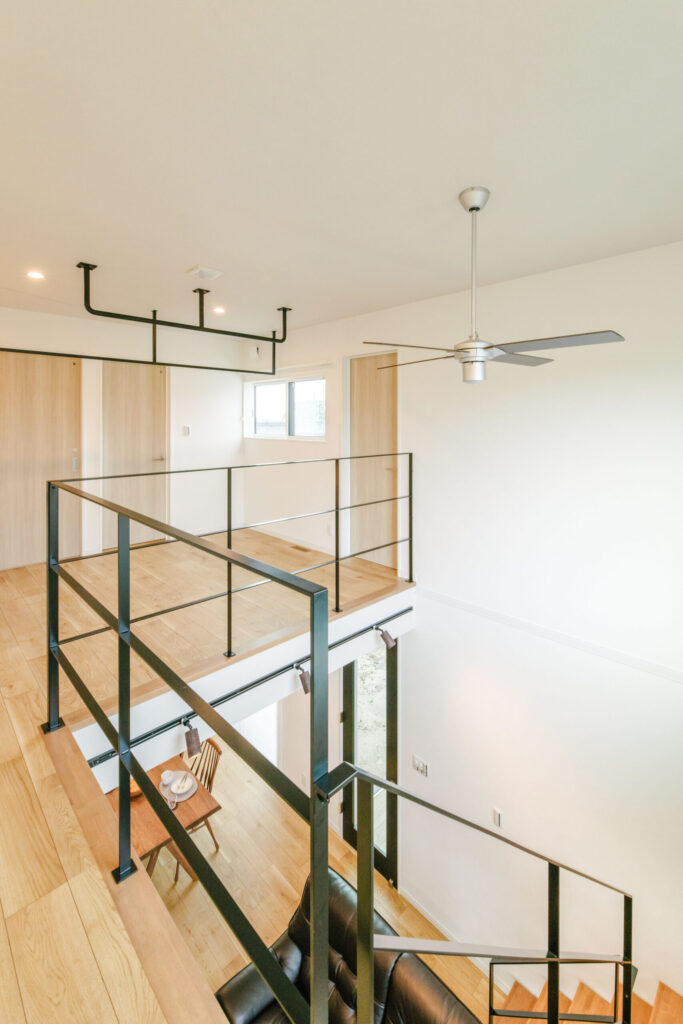 間口の狭い敷地を有効活用した鉄骨階段は大迫力