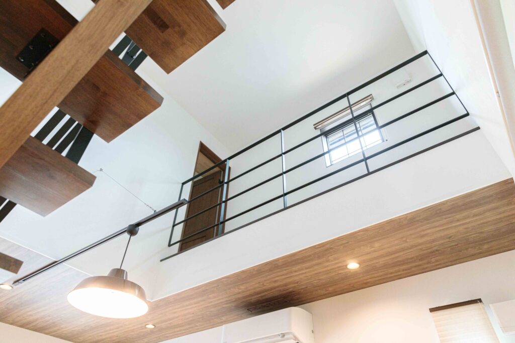 吹抜けのアイアン手摺 ブラックで統一してオシャレに
