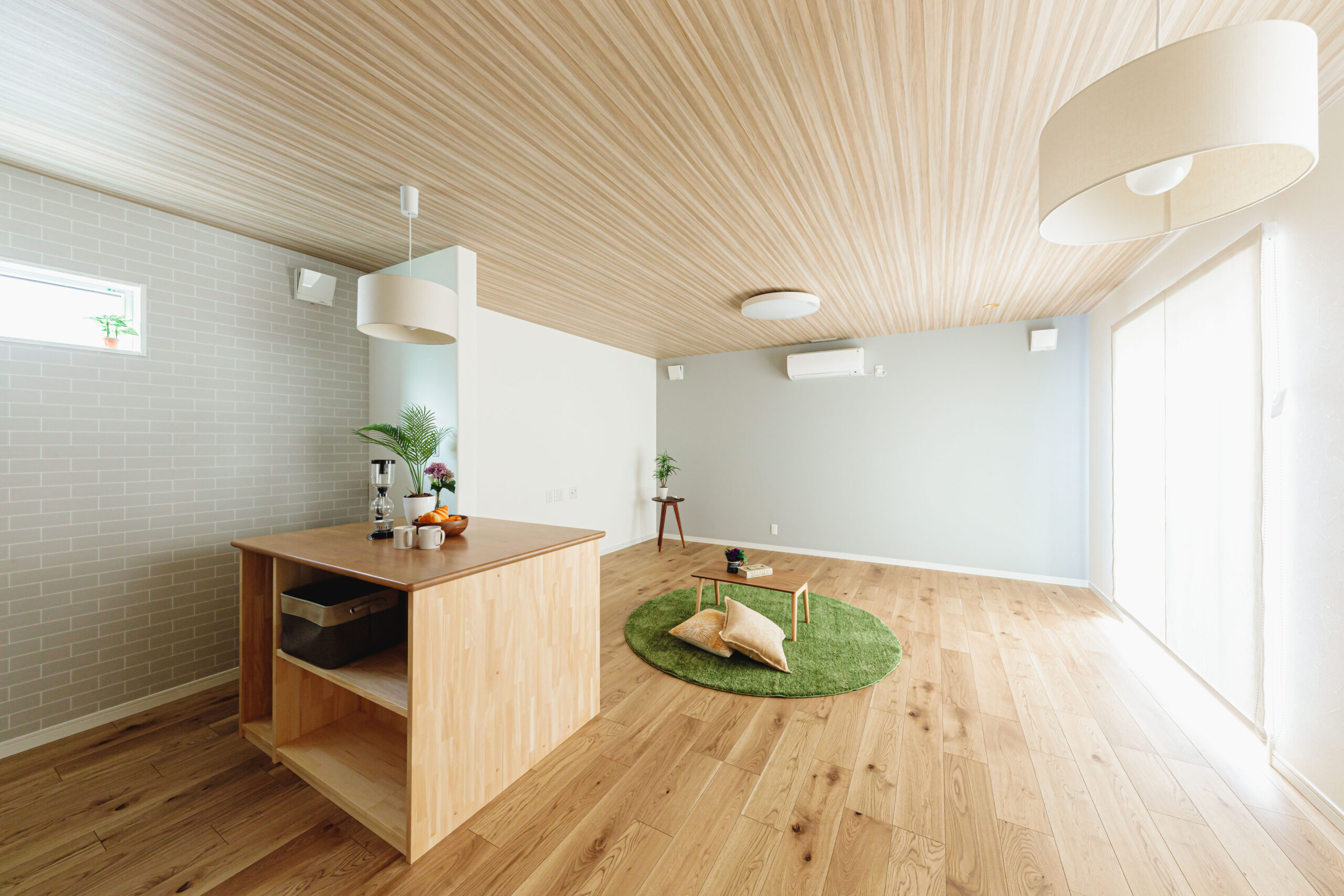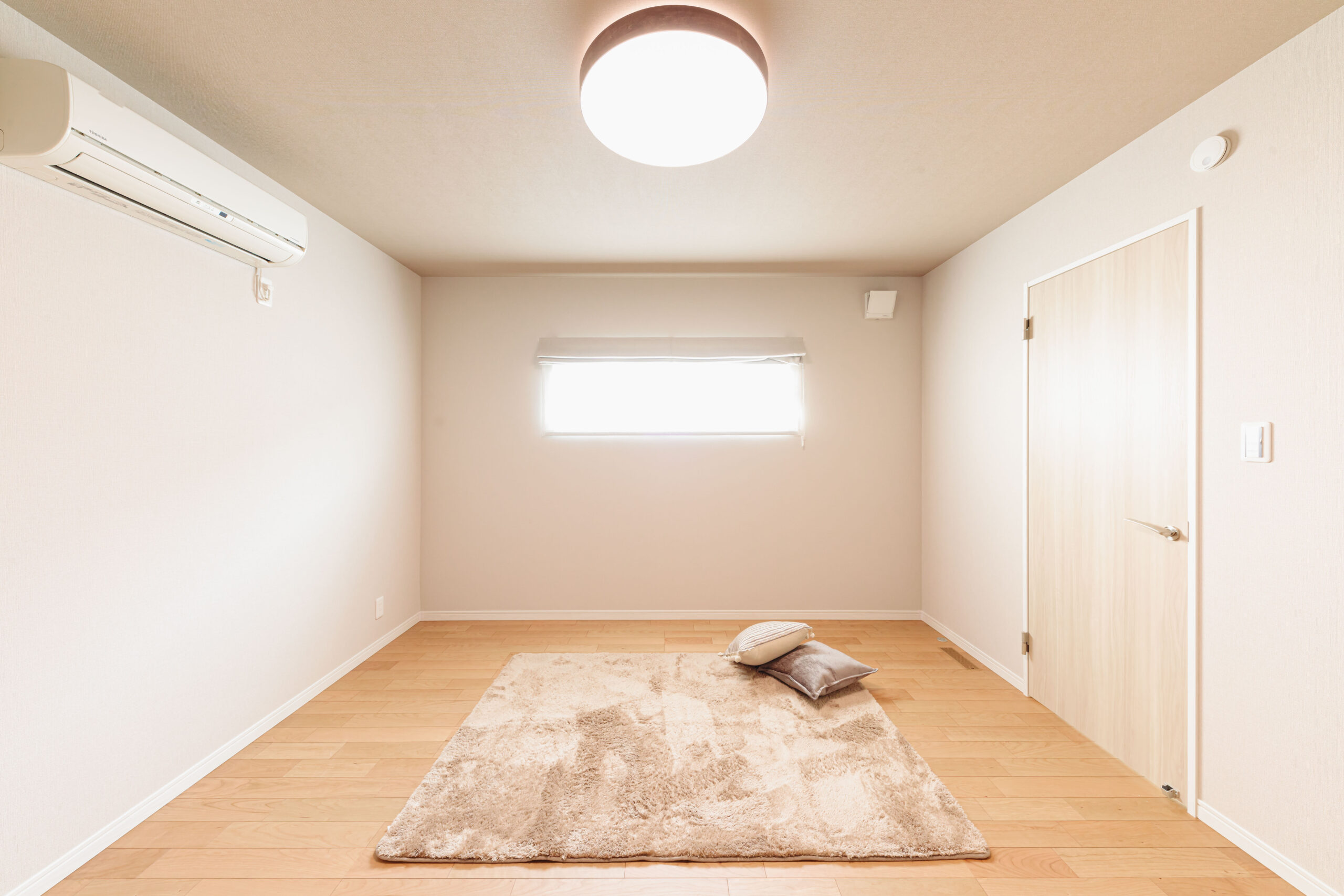 子供部屋と寝室を8帖用の壁掛けエアコン1台で冷暖房しています。建物の性能が良いと家庭用エアコンでも冷暖房は充分できます。