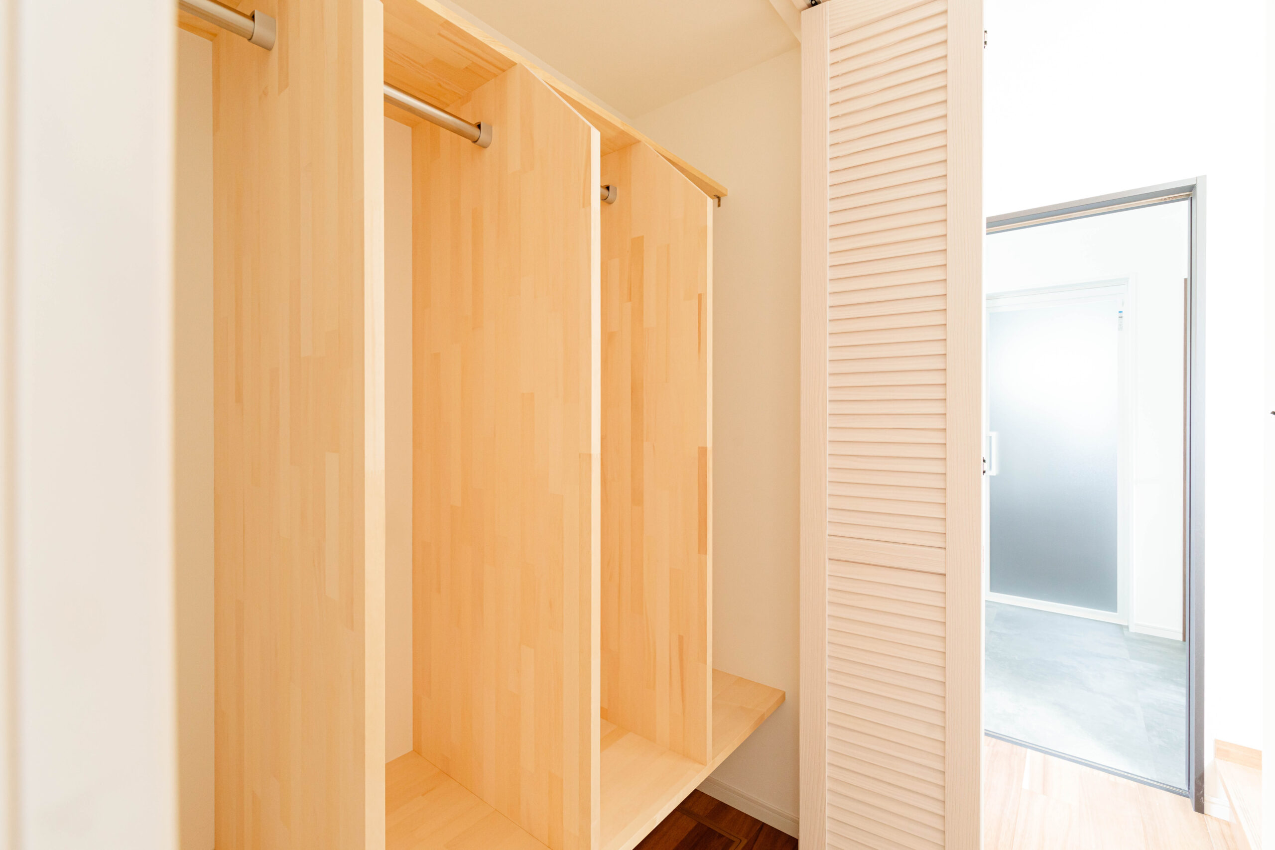 洗面脱衣室と物干し室とウォークインクロ―ゼットが隣接しているので家事が楽になります