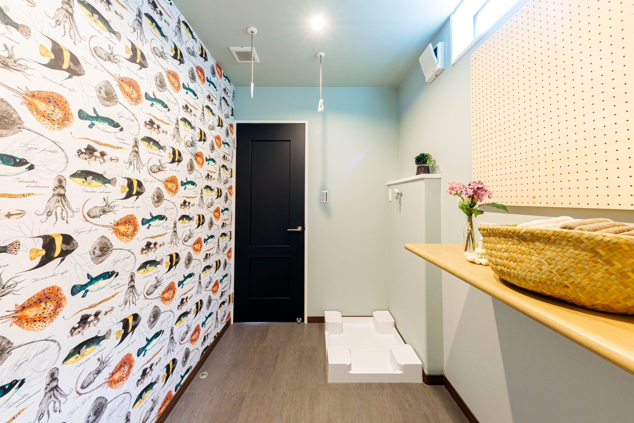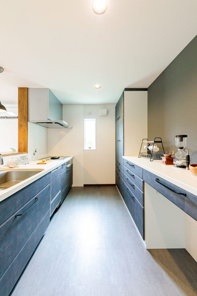 ブルーによく合う壁や床や照明など、お好みに合わせて選んで頂いています