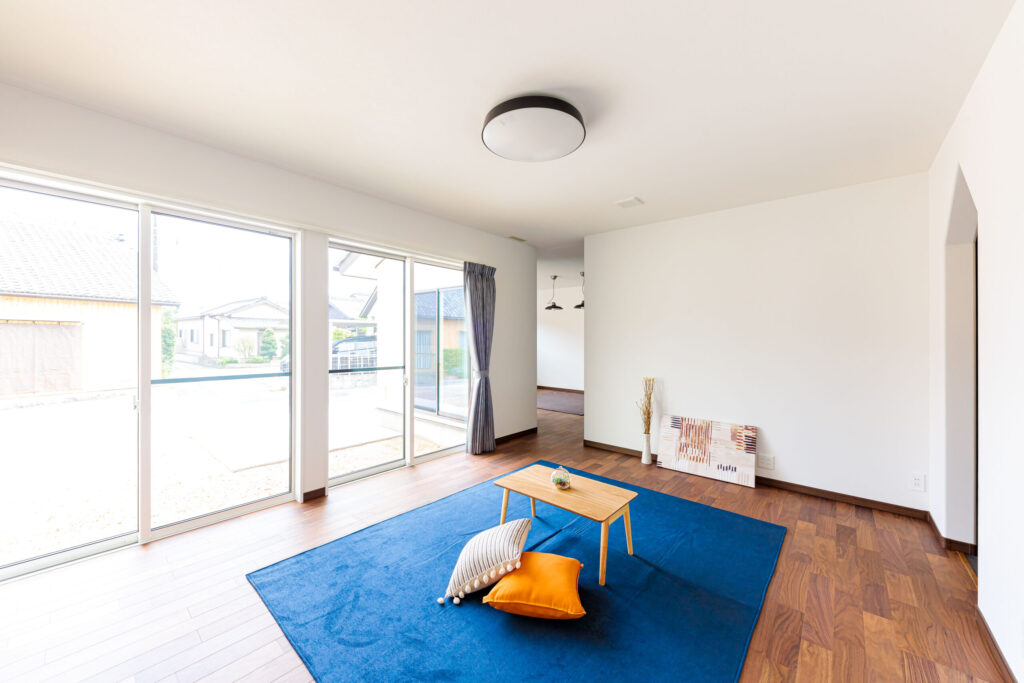 冬は太陽光が入る設計なので、明るく温かいリビングです。