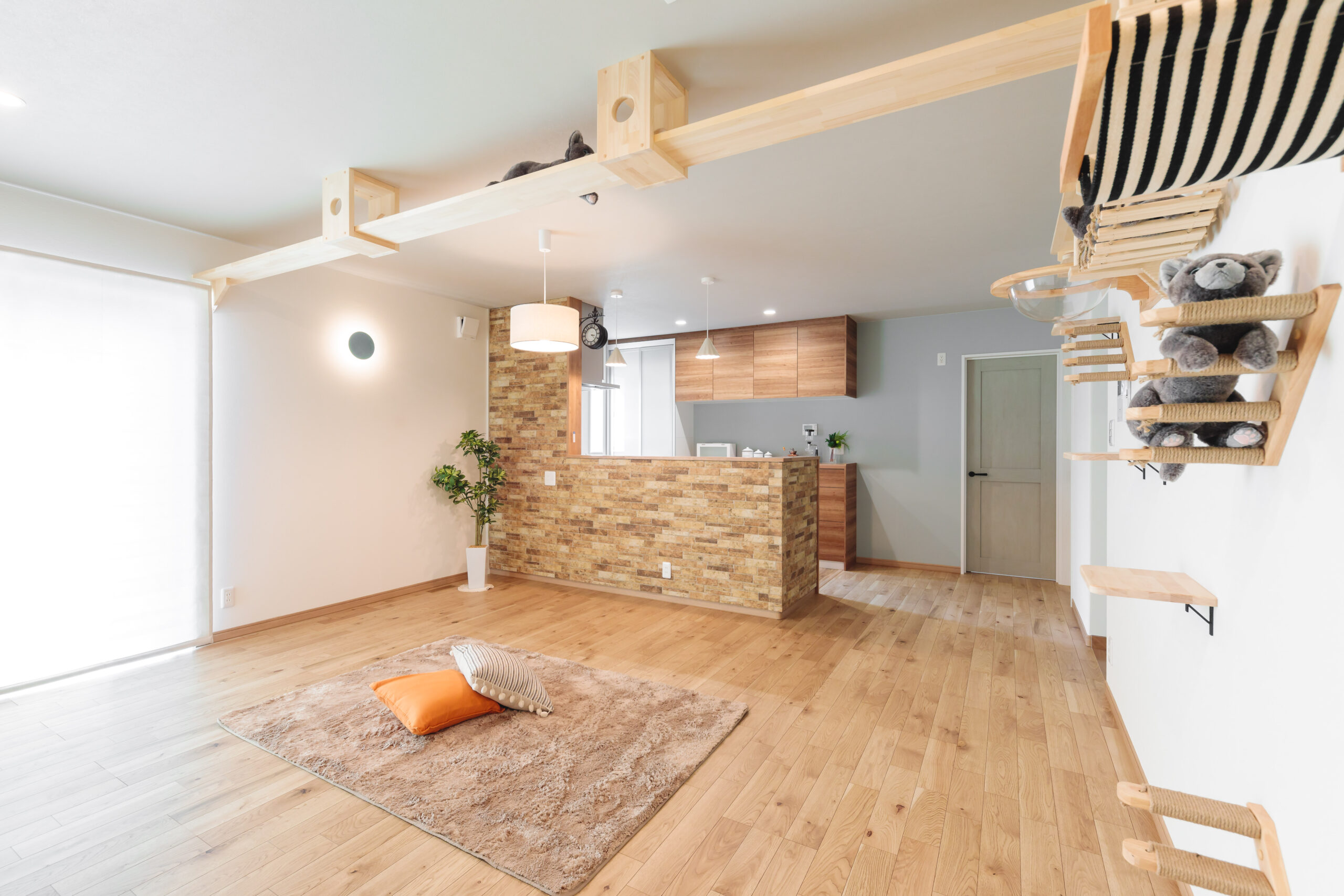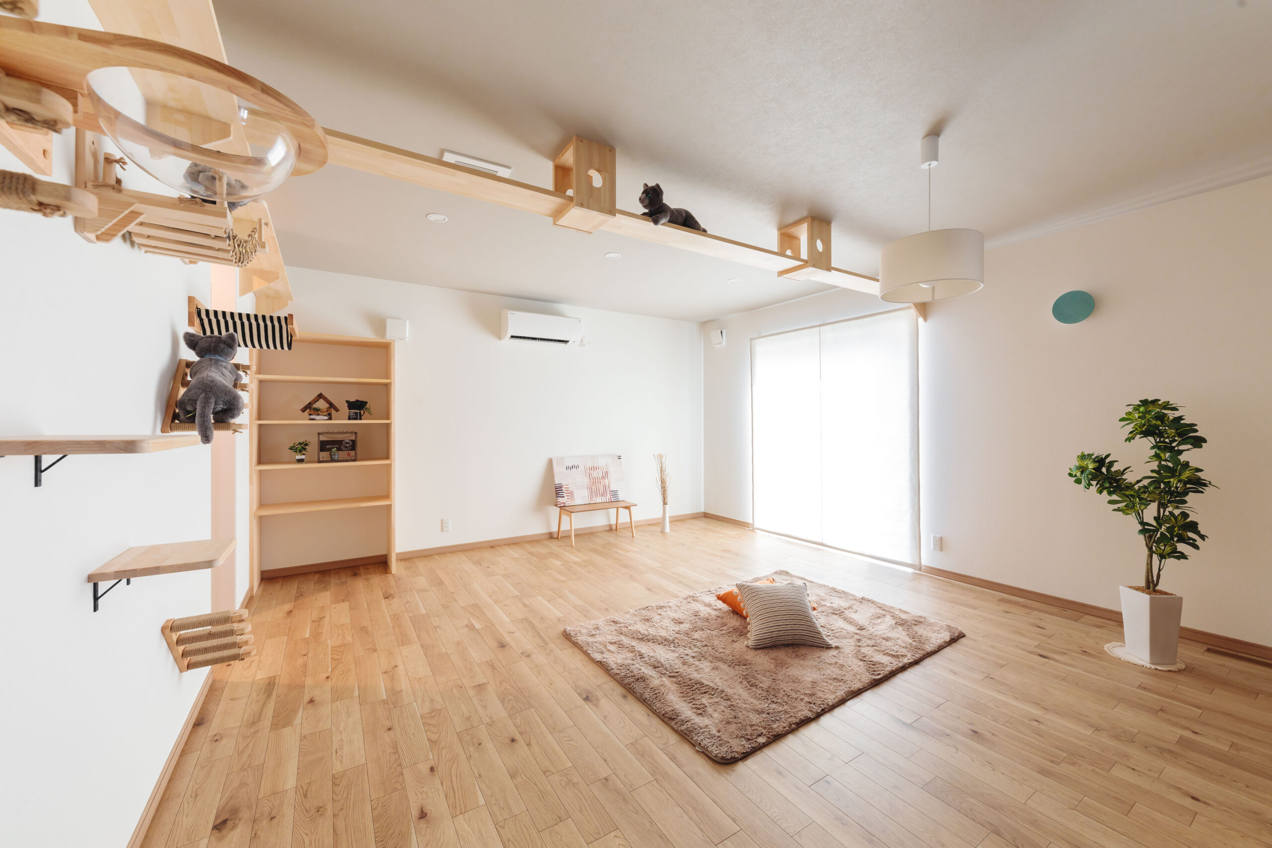 何気ない壁でもハシゴや棚があり、猫ちゃんが歩き回ると楽しいですね